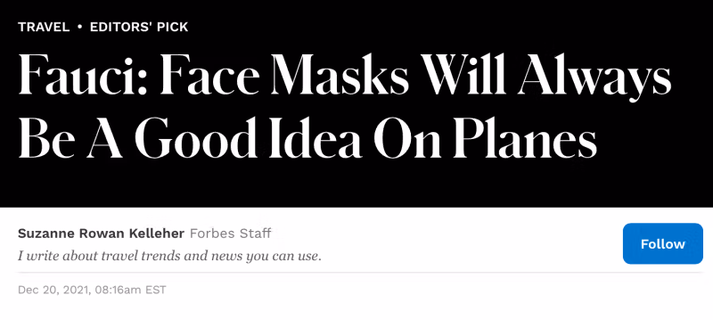 እንደ ፋውቺ ፣ጆናታን ሬይነር እና ጄረሚ ፋውስት ካሉ አሳሳች ቀናዒዎች ፈቃድ በሌለበት በአውሮፕላኖች ላይ የማስክ ማዘዣውን ማብቃት ከሰራተኞች ጋር በተያያዙ ኢንፌክሽኖች ላይ አስገራሚ ጭማሪ አላመጣም ፣ ምክንያቱም ጭምብሎች አይሰራም። በፍፁም የላቸውም እና በጭራሽ የላቸውም።